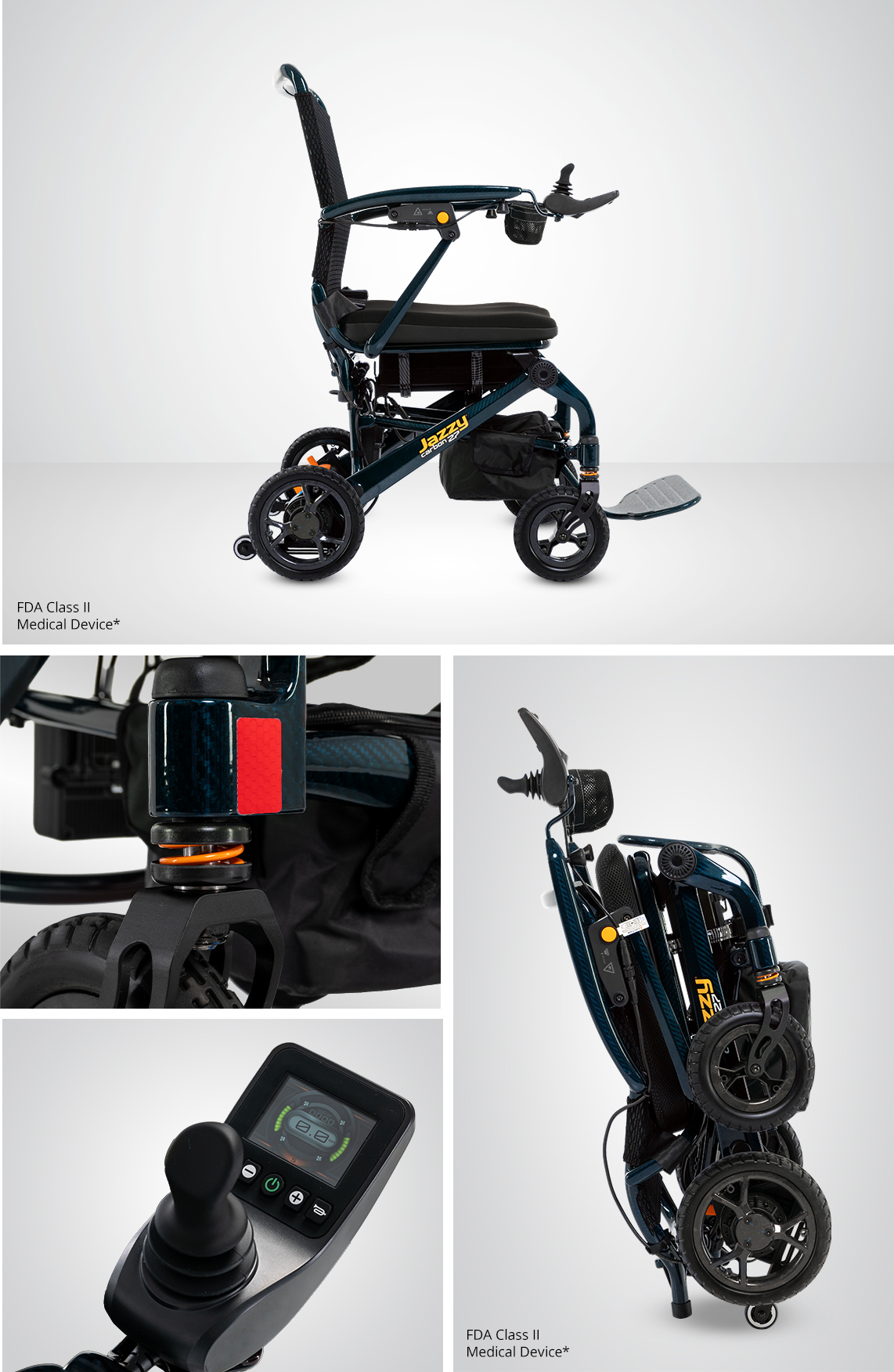 With a high-quality carbon fiber frame and weighing in at approximately 27.8 lbs. without the battery, the Jazzy® Carbon 27 is a dependable, durable, and lightweight portable mobility solution. It folds and unfolds in a matter of seconds for easy transport and is packed with sleek features so you can travel worry-free like never before.